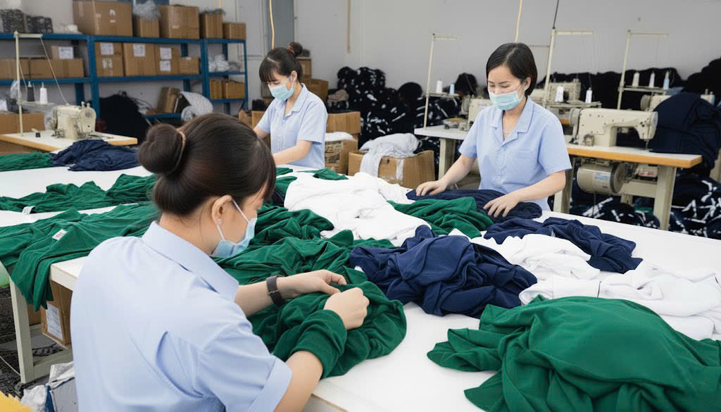 Ưu điểm nổi bật:Xưởng may với thiết bị máy móc hiện đại, Đội ngũ thợ lành nghề, đảm bảo từng đường kim mũi chỉ, Nhận đơn hàng số lượng lớn hoặc nhỏ, hỗ trợ sản xuất thử mẫu theo yêu cầu, Đảm bảo đúng tiến độ – kiểm tra chất lượng nghiêm ngặt trước khi giao.
